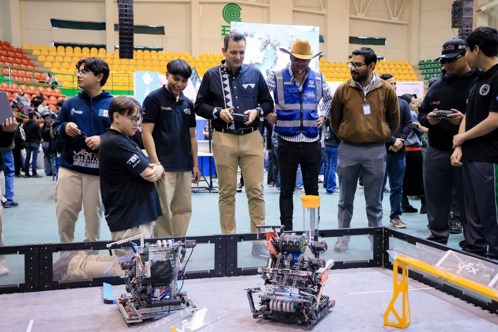 El viernes arrancó desde temprano con visitas a medios, siguió como invitado especial a un evento del Colegio de Bachilleres en el gimnasio del Parque Central, y ahí tuvo escenario con los jóvenes del Campeonato Estatal de Robótica y Habilidades STEM, setenta equipos de preparatorias de todo el estado hablando de futuro, talento y tecnología.