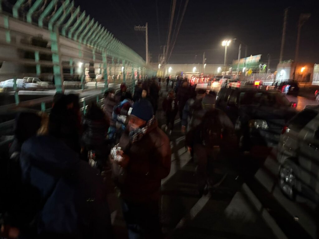 Anoche, decenas de personas se instalaron frente a la maquiladora BizLink, con la intención de ser de los primeros en ingresar y alcanzar una entrevista de trabajo. Algunos llegaron desde la tarde; otros improvisaron camas sobre el concreto o permanecieron sentados durante horas, soportando el frío.