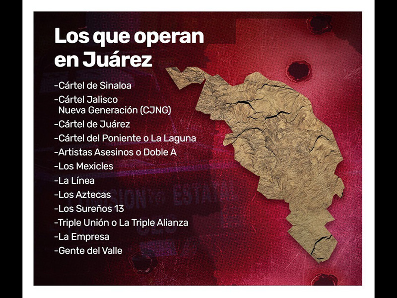 De acuerdo con el informe Presencia del Crimen Organizado en México 2023, elaborado por el especialista en seguridad Alberto Capella, en el estado operaban 20 grupos delictivos con actividad en 54 de los 67 municipios, y se estableció que el CJNG tendría presencia en al menos siete municipios, incluido Ciudad Juárez.