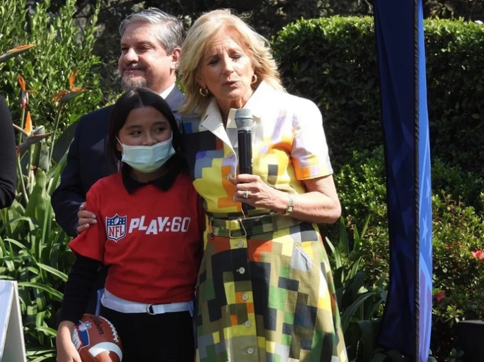 Jill Biden, quien además es maestra de una escuela comunitaria en Estados Unidos, bromeó con los jóvenes preguntándoles si faltaron a clases para estar con ella jugando futbol americano y se mostró emocionada durante las actividades, aplaudiendo y animando a los más pequeños a cumplir con sus ejercicios.