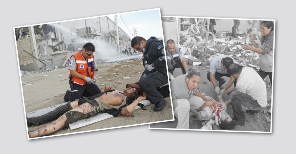 Ese día, las ambulancias no tuvieron descanso. El lamento de las sirenas se dejó escuchar por las principales avenidas de la ciudad. Al verse superados por el número de heridos, las autoridades recurrieron a unidades de la policía para transportar a los obreros lesionados.