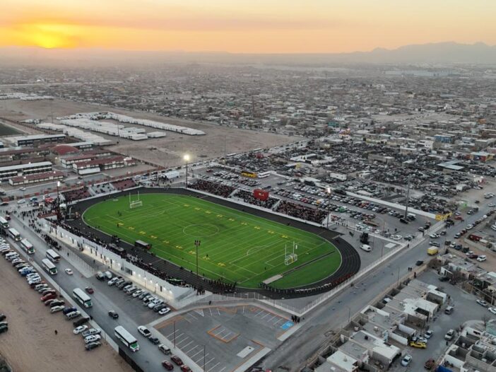 El Estadio 8 de Diciembre se localiza en el suroriente de Ciudad Juárez y fue inaugurado el 31 de enero de 2025, con una inversión de 57 millones de pesos.