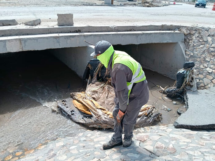 También se hizo el retiro de hierba y limpieza general en el Arroyo de Las Víboras y en la colonia Plutarco Elías Calles, así como de los vehículos que fueron arrastrados por la corriente.