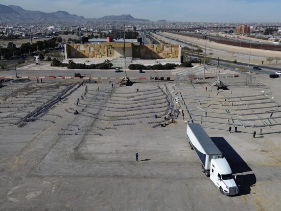 Un grupo de trabajadores comenzaron a armar las carpas que habilitarán para recibir a los mexicanos que podrían llegar al país en caso de que el presidente Donald Trump realice las deportaciones masivas de connacionales