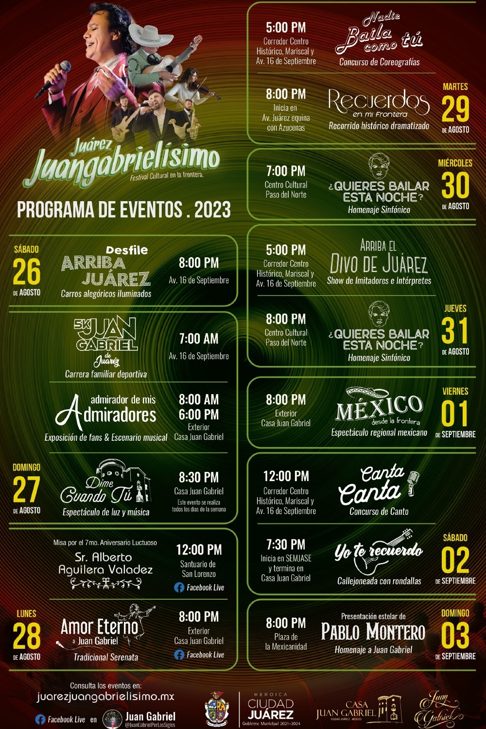 Lo anterior como parte de las actividades que e realizan para recordar al cantautor Juan Gabriel, considerado el Hijo Predilecto de Juárez, quien el 28 de agosto cumple su séptimo aniversario luctuoso.