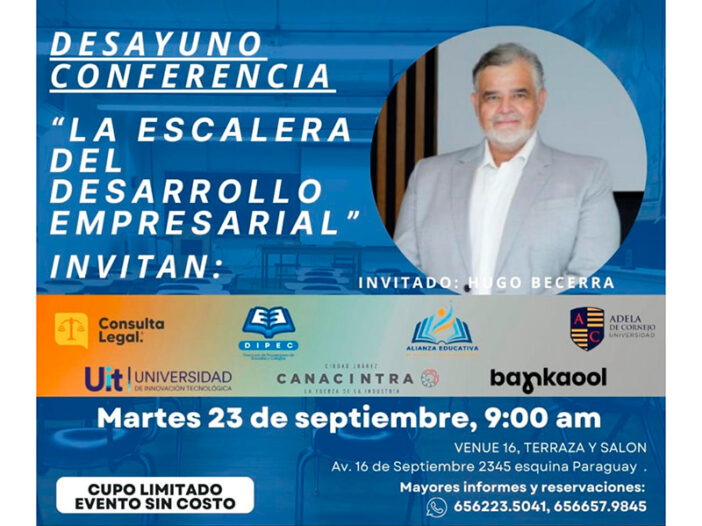 Organismos de educación convocaron a participar en la conferencia “La escalera al desarrollo empresarial”, que se realizará el próximo martes 23 de septiembre en Ciudad Juárez.