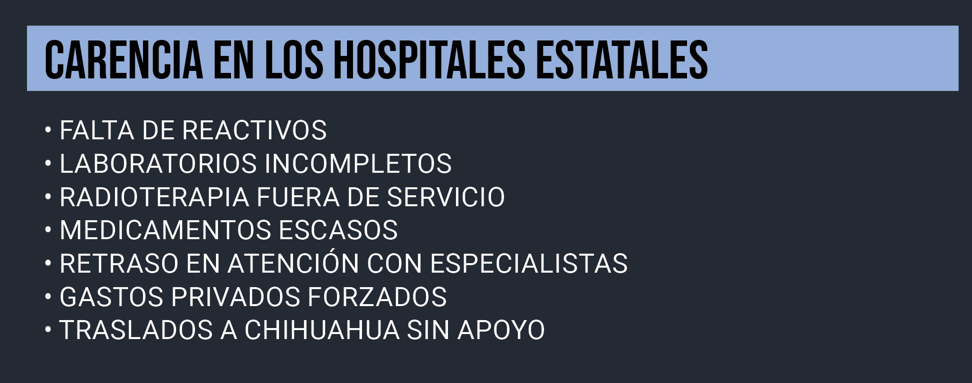 “El MediChihuahua no cubre muchas cosas y casi todo se tiene que hacer por fuera. Yo no tengo esa solvencia económica”, señaló.