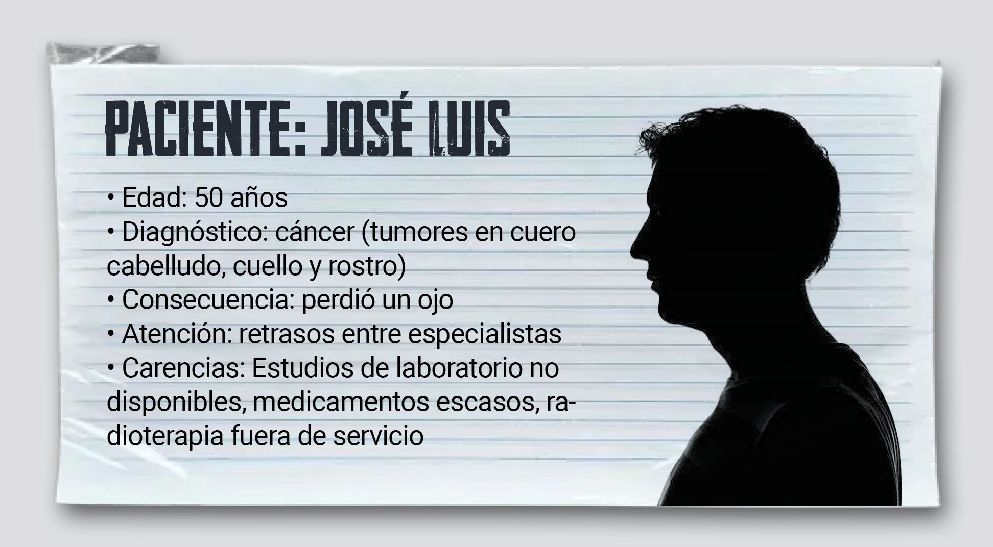 José Luis padece tumores malignos en cuero cabelludo, cuello y rostro y está siendo atendido mediante interconsulta. Su hospitalización debería ser inminente.