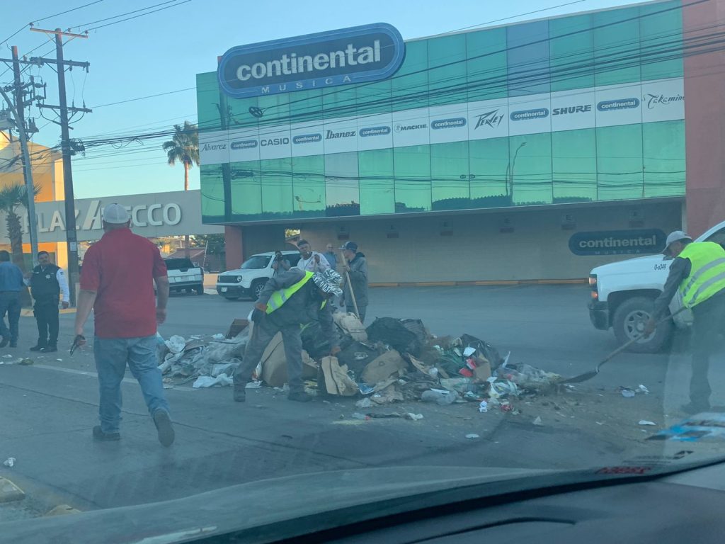 Gibran Solís, director de Limpia, informó que una empresa local dedicada a la recolección de residuos es la responsable de derramar basura esta mañana sobre la avenida Manuel Gómez Morin.