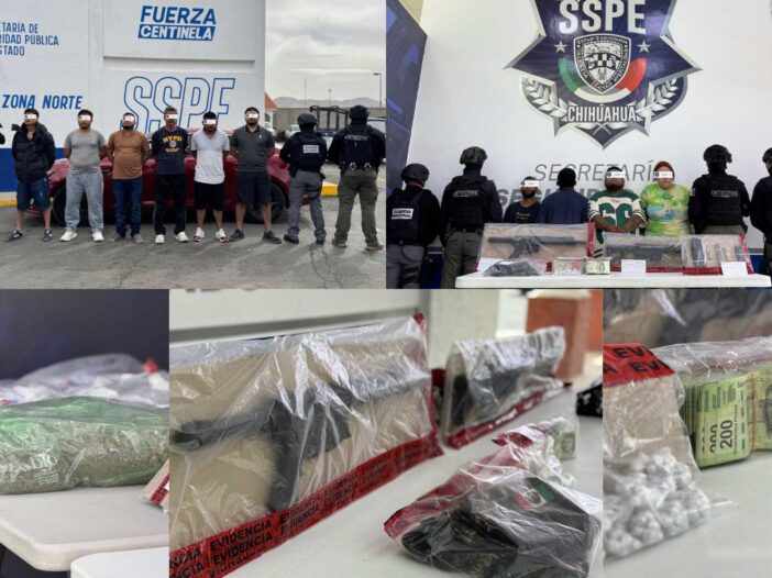 En acciones coordinadas por la Secretaría de Seguridad Pública del Estado, a través del Grupo Especial de Detectives, elementos de la Guardia Nacional y Defensa, logró la detención de diez presuntos integrantes de un grupo criminal que opera en la frontera.