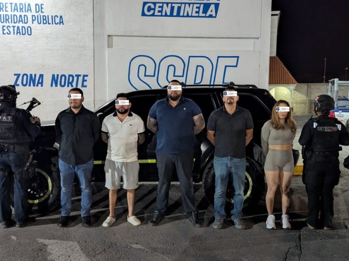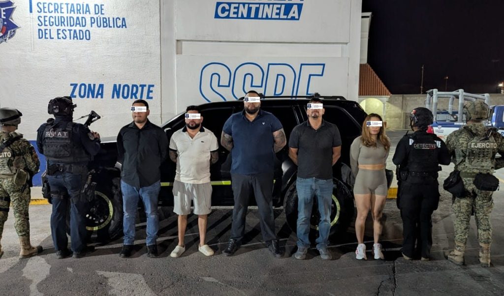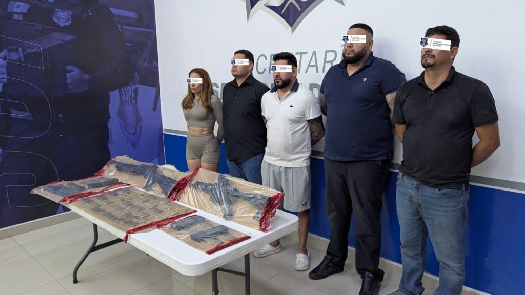 Se informó que los agentes realizaron la detención de Miguel Ángel S.H., Adrián Alejandro V.M., José Luis R.G., José Ángel O.R. y María Cristina M.H., a quienes se les aseguraron, cuando menos, dos armas de fuego y más de 290 cartuchos útiles.