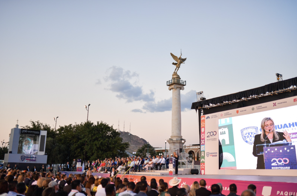 La jefa del Ejecutivo Estatal, recordó que en Chihuahua vive gente persistente y trabajadora, que desde los inicios de la ciudad se conformó una sociedad tenaz y que ha vencido al desierto para poder obtener el desarrollo y la prosperidad que hoy vemos.