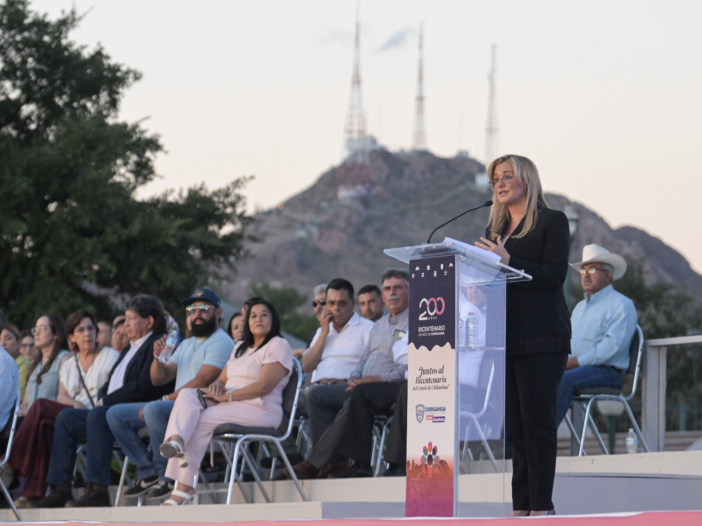 La jefa del Ejecutivo Estatal, recordó que en Chihuahua vive gente persistente y trabajadora, que desde los inicios de la ciudad se conformó una sociedad tenaz y que ha vencido al desierto para poder obtener el desarrollo y la prosperidad que hoy vemos.