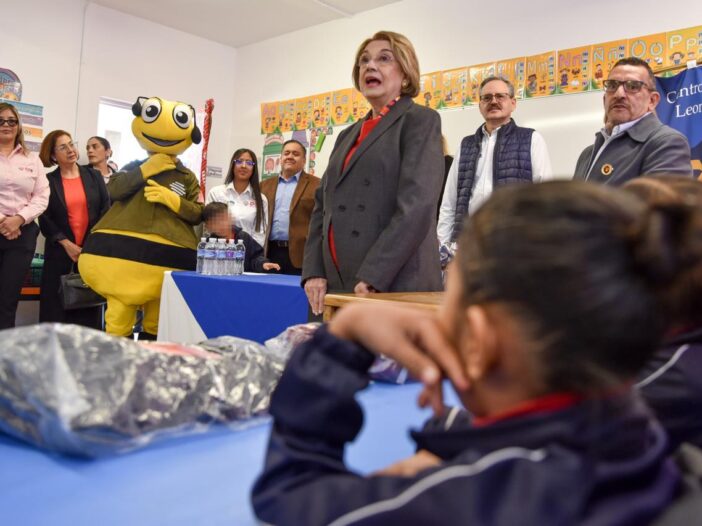 La mañana de este miércoles, la presidenta del DIF Estatal, María Eugenia Galván Antillón, participó en la entrega de chamarras a 214 estudiantes del Centro Escolar Leona Vicario, como parte de la campaña “Juntos Contra el Frío 2025”.
