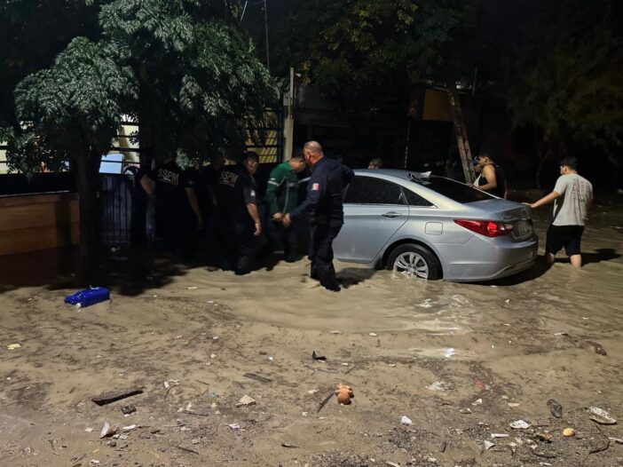 Mientras, en el plantel 5 del Colegio de Bachilleres (Cobach) presenta inundación no solo de las vialidades que lo rodean, sino de gran parte de los patios, donde hay árboles caídos.