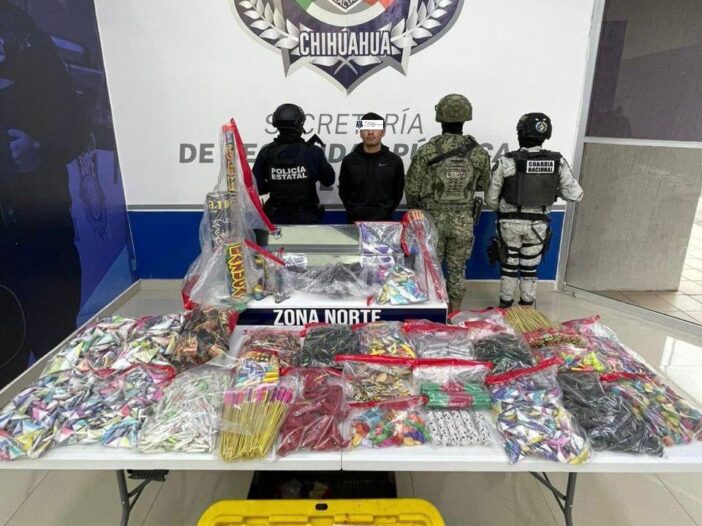 Información de la Secretaría de Seguridad Pública Estatal (SSPE), indica que la tarde del domingo 28 de diciembre, agentes de la Policía Estatal, así como de la Guardia Nacional, realizaron la detención de un hombre de 22 años, luego de que, tras una revisión, le encontraron con más de 4 mil piezas de pirotecnia, almacenadas de manera ilegal.