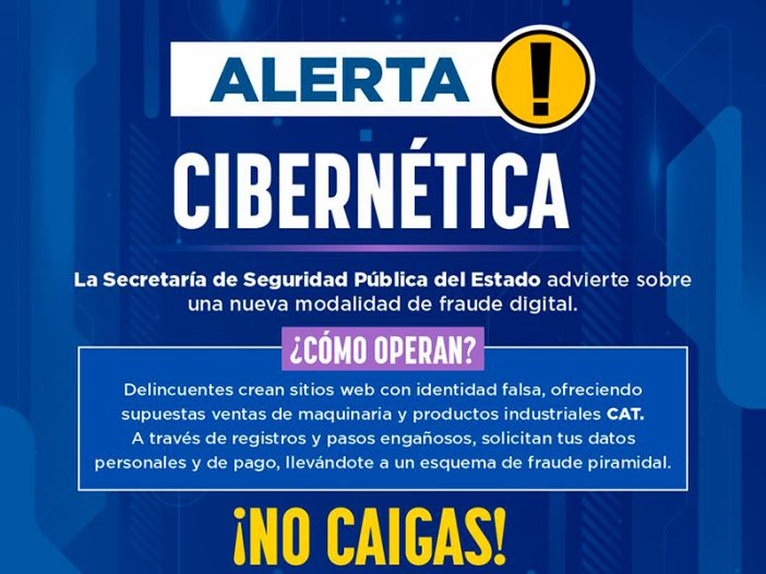 Una novedosa modalidad de fraude fue detectada en internet por ciudadanos y denunciada ante autoridades, ya que una página web suplanta la identidad de la empresa CAT para operar un esquema de estafa tipo piramidal, informó personal de la Policía Cibernética de la Secretaría de Seguridad Pública del Estado (SSPE).