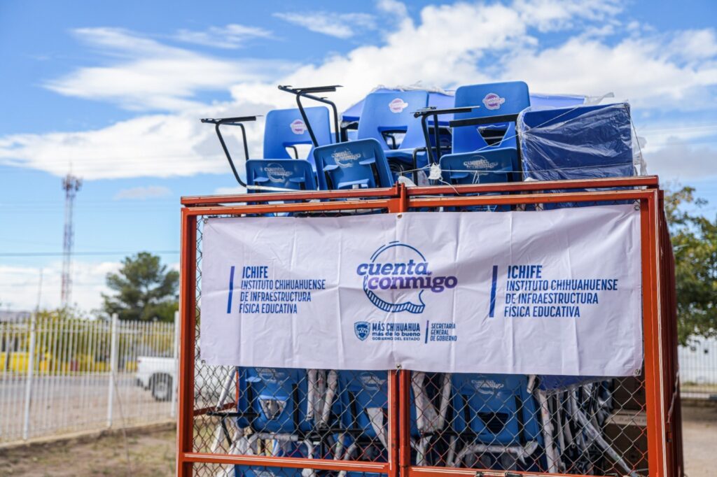 La gobernadora Maru Campos encabezó este miércoles en el municipio de Nuevo Casas Grandes, la entrega de equipo y mobiliario para 36 escuelas de educación Básica de la región noroeste del estado.