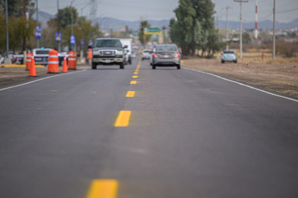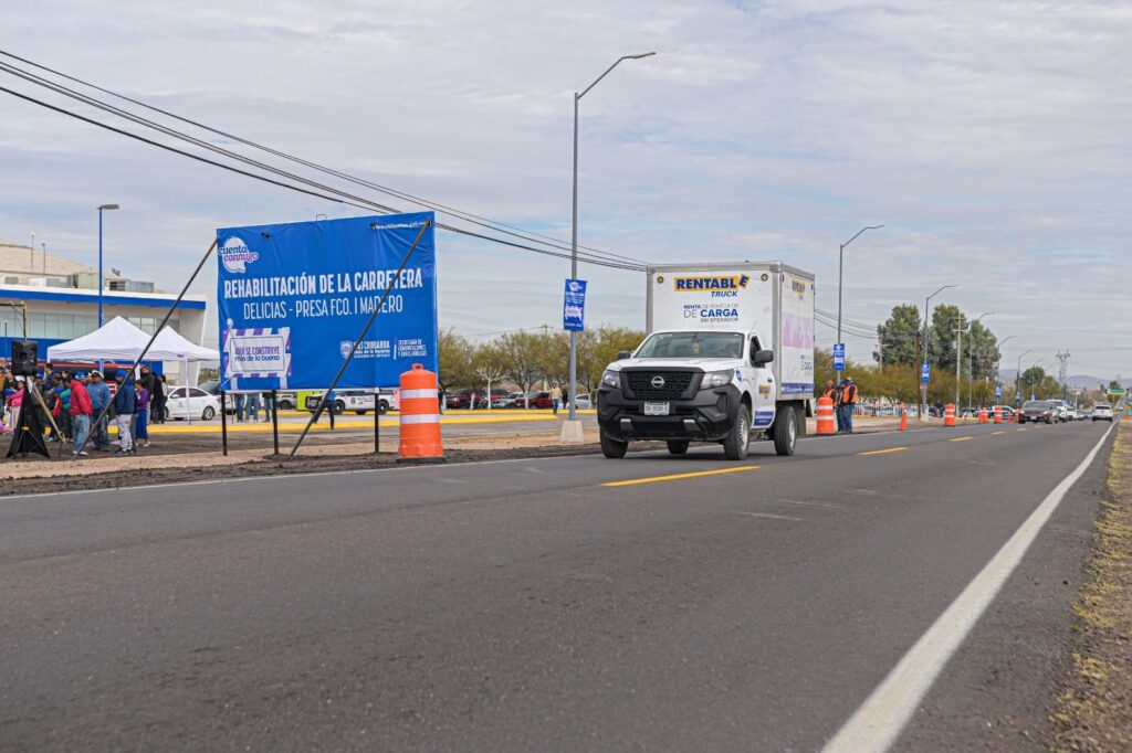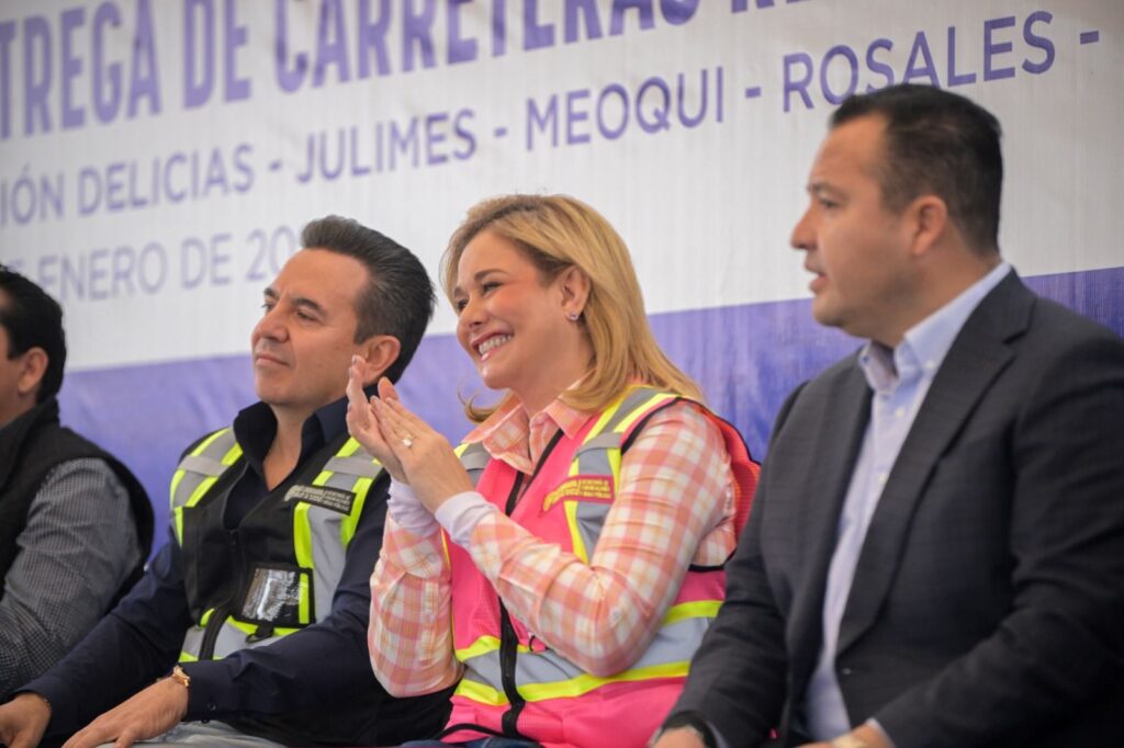 En el camino que conduce a la presa Francisco I. Madero, la mandataria estatal inauguró la rehabilitación de 132 kilómetros distribuidos en ocho carreteras que conectan Delicias con los municipios de Satevó, Valle de Zaragoza, Parral, Rosales, Meoqui, Saucillo y Julimes. La inversión en esta obra asciende a 269 mdp.