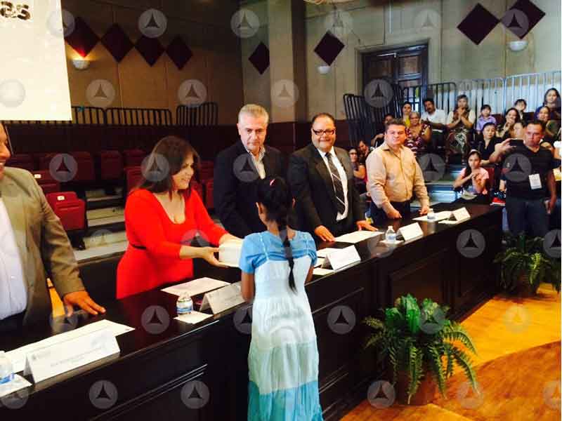 Se trata de un apoyo de mil 500 pesos, además, a los 10 alumnos más sobresalientes les entregaron una tablet