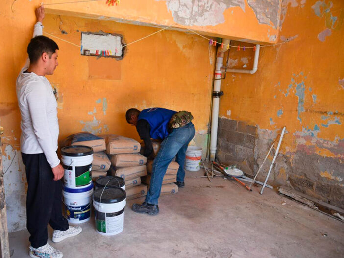 Este día, dijo, se entregaron paquetes que incluyen bloques, cemento, pintura e impermeabilizante.