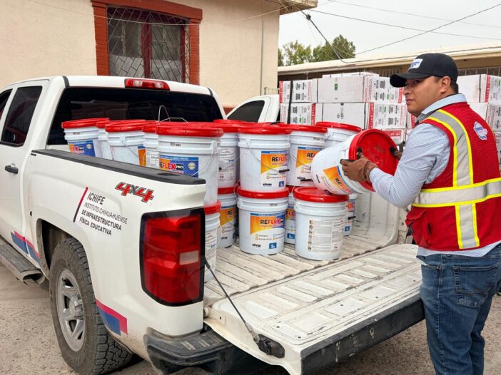 “Estamos iniciando el programa Juntos Reconstruimos y vamos a entregar materiales a siete escuelas. Aires evaporativos, calentones, butacas, pizarrones, mesas de trabajo, pintura e impermeabilizante”, dio a conocer Florencio Peña, delegado del Instituto Chihuahuense de Infraestructura Física Educativa (Ichife).
