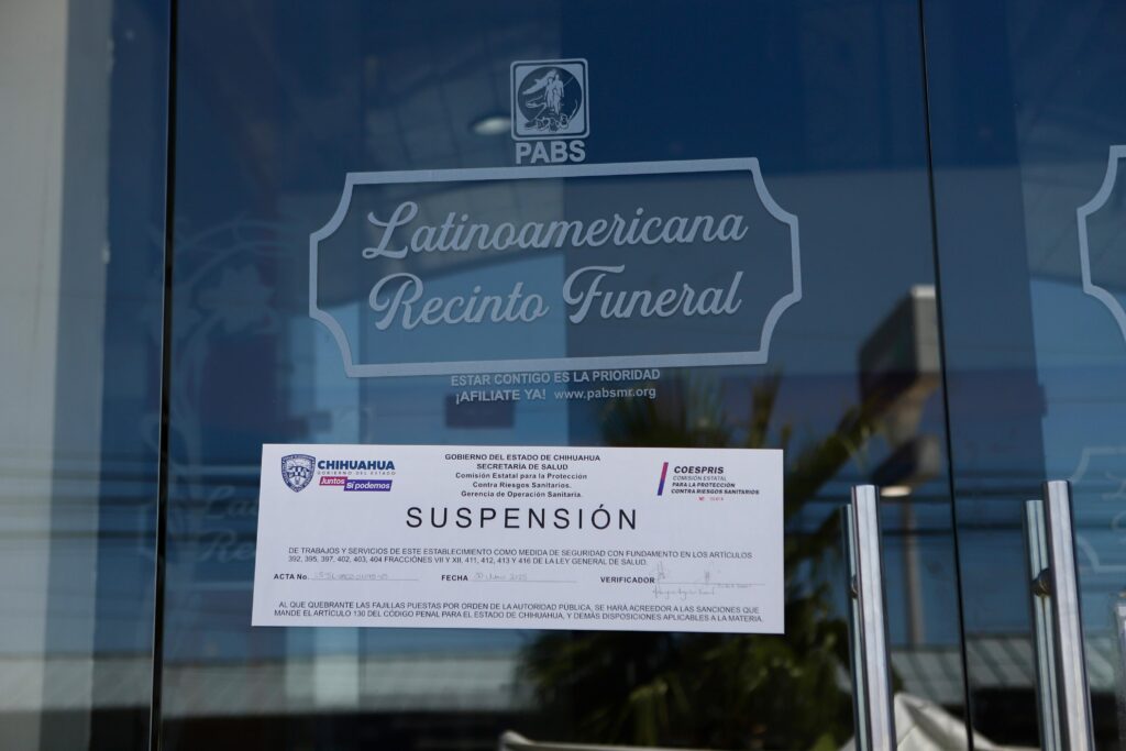 Eduardo Montes es otro de los fronterizos que acudió ayer al Recinto Funeral de Paseo Triunfo, en cuya puerta principal fue colocado un sello de suspensión firmado por la gerencia de Operación Sanitaria de la Comisión Estatal para la Protección Contra Riesgos Sanitarios (Coespris), con fecha del 30 de junio de 2025.