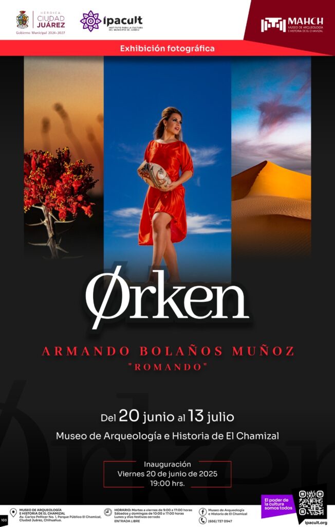 El Instituto para la Cultura del Municipio de Juárez (IPACULT) invita a la comunidad fronteriza a la inauguración de la exposición fotográfica “Ørken” del artista visual Armando Bolaños Muñoz, conocido como “Romando”, que se llevará a cabo hoy viernes 20 de junio a las 7:00 de la tarde en el Museo de Arqueología e Historia de El Chamizal (MAHCH).