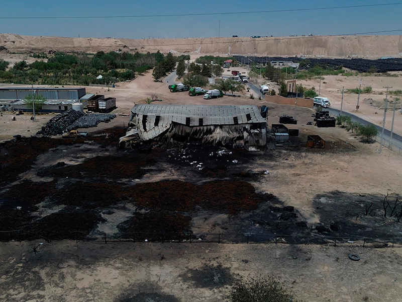 Personal de la Secretaría de Desarrollo Urbano y Ecología del Estado (Sedue), intervino el Relleno Sanitario Municipal (RSM), después del incendio de 10 mil llantas y varias toneladas de caucho en la planta trituradora GUMA Reciclaje y Diseño, que se quemaron a escasos 700 metros del confinamiento de neumáticos de desecho.