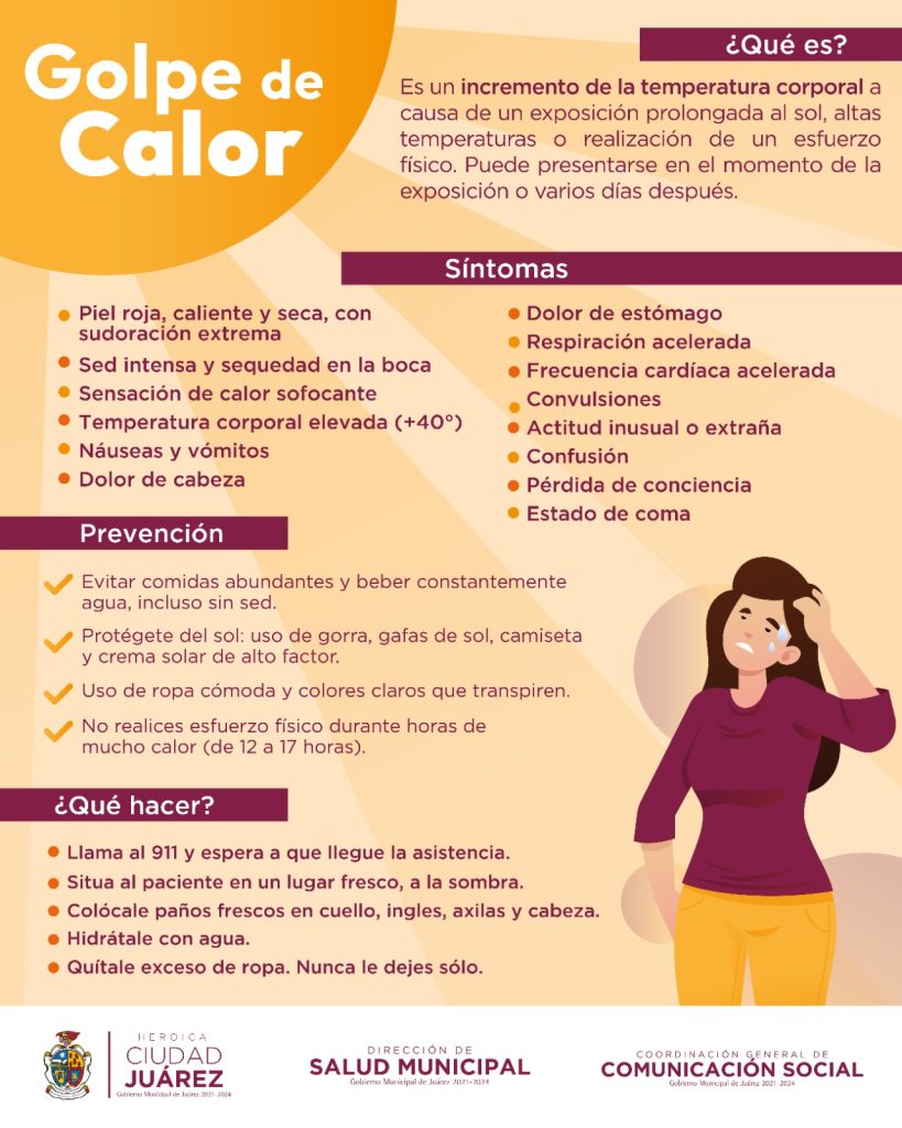 Así mismo, invitó a la comunidad a que acudan a consulta médica a su unidad de salud más cercana, en caso de que presenten algún síntoma por golpe de calor o insolación.