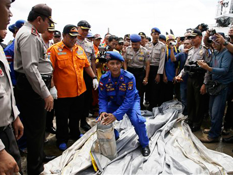 Varios buzos se enfrentaban el domingo a la llovizna y las grandes olas, intentando llegar a lo que se cree es el fuselaje del vuelo 8501 de Air Asia