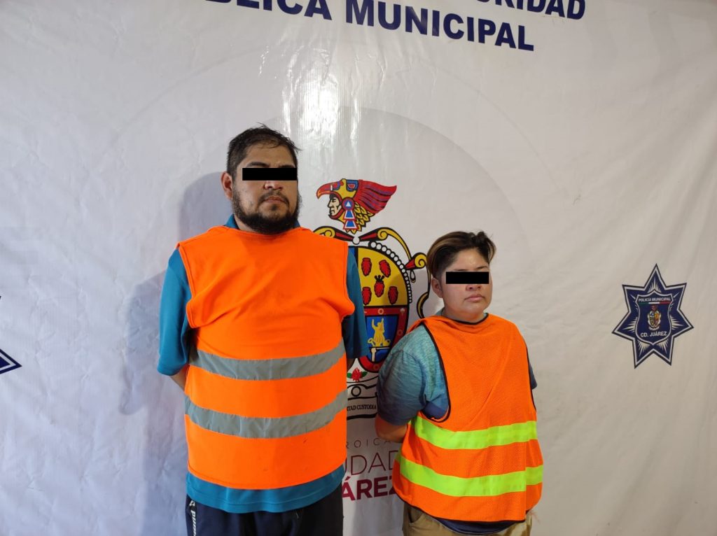 Mario Marcos M. P. y Reyna Guadalupe R. A., fueron detenidos ayer por Elementos de la Secretaría de Seguridad Pública Municipal, luego de que fueran señalados por entrar armados a un banco.