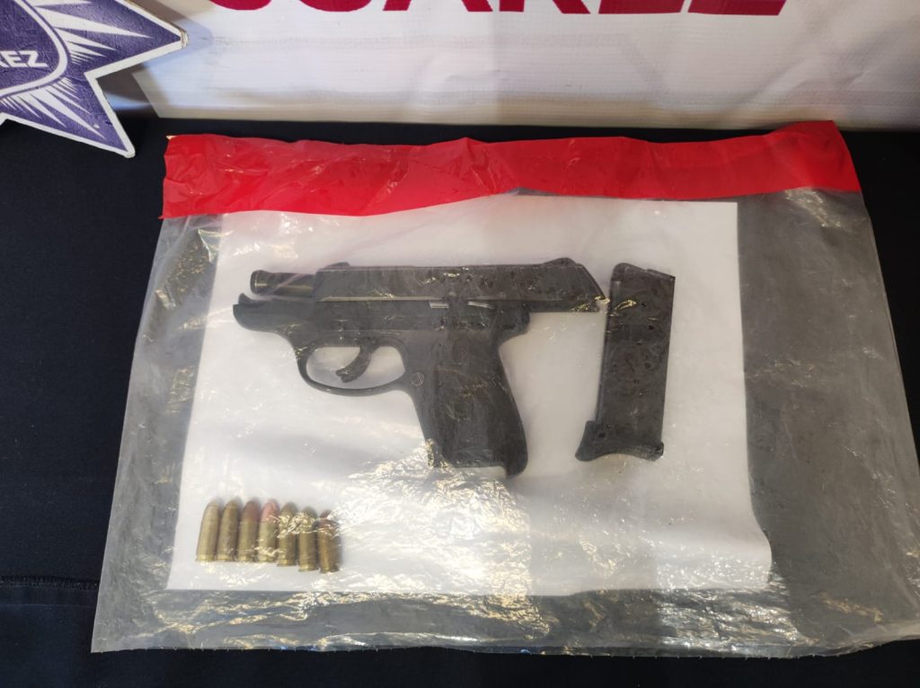 Razón por la cual los oficiales abordaron a dicha pareja y al realizarles una inspección preventiva le localizaron a la mujer fajada a la altura de la cintura un arma de fuego calibre 9 milímetros, con un cargador abastecido con siete cartuchos útiles, procediendo con su detención.