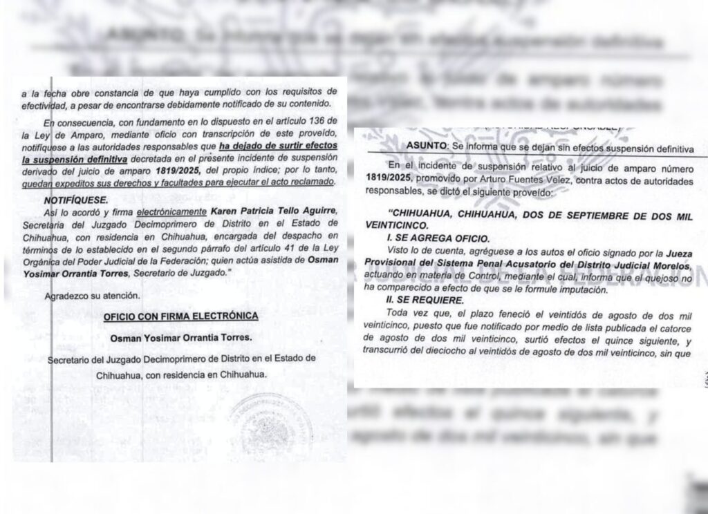 El exsecretario de Hacienda del gobierno de Javier Corral Jurado (2016-2021), A.F.V., se encuentra formalmente prófugo de la justicia, luego de que un juez federal revocó este 4 de septiembre las suspensiones definitivas que lo habían protegido temporalmente contra tres órdenes de aprehensión por peculado agravado.