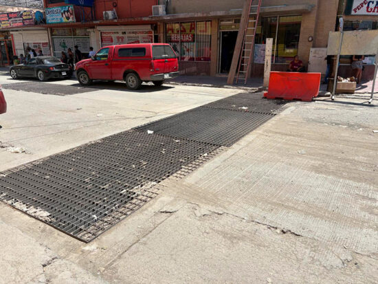 Sustituyen rejillas de drenaje pluvial de la Mina, donde caían vehículos todos los días