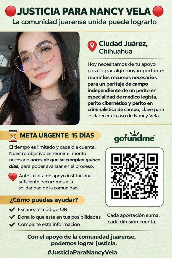 Por medio de redes sociales, familiares de Nancy Vela, quien fuera arquitecta y víctima de un posible feminicidio en 2023, piden apoyo a la comunidad con el propósito de que se elabore un peritaje independiente que ayude a resolver el caso de la joven.
