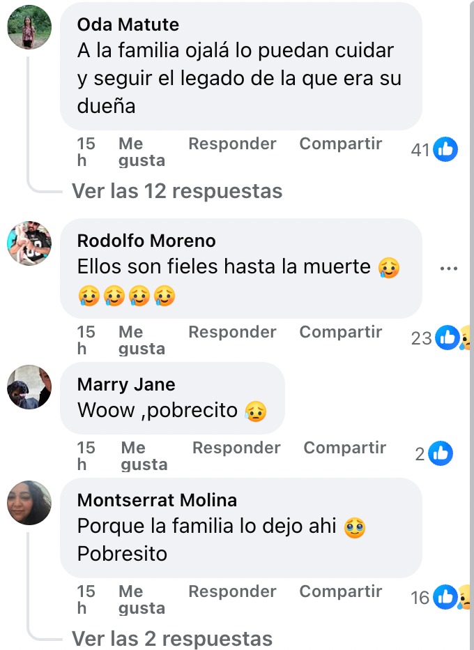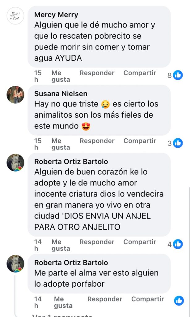 “Son los seres más fieles; ojalá alguien lo rescate y le dé la vida que merece.” “Los humanos jamás nos vamos a comparar con ellos en su buen corazón.” “No puedo con esto. De verdad me parte el alma. Ahora necesita más amor que nunca.”