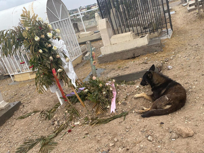 Entre cruces mojadas, flores vencidas por la lluvia y el olor a tierra húmeda, un pastor alemán se niega a abandonar la tumba de su dueña en el panteón Tepeyac, ubicado en la colonia Industrial, al poniente de Ciudad Juárez.