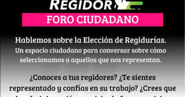 El organismo Regidor MX convocó a la ciudadanía juarense a participar en el Foro Ciudadano #YoElijoRegidor: hablemos de la elección de regidurías, con el objetivo de informar y debatir sobre la elección directa de estos cargos de representación municipal. Abelamar Chacón, convocante del evento, informó que la cita será el próximo martes 17 de febrero, … Sigue leyendo Foro ciudadano en Juárez debatirá elección directa de regidurías