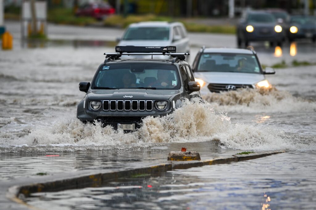 Hasta el momento, en algunas zonas de la ciudad hay inundaciones y algunos vehículos varados.