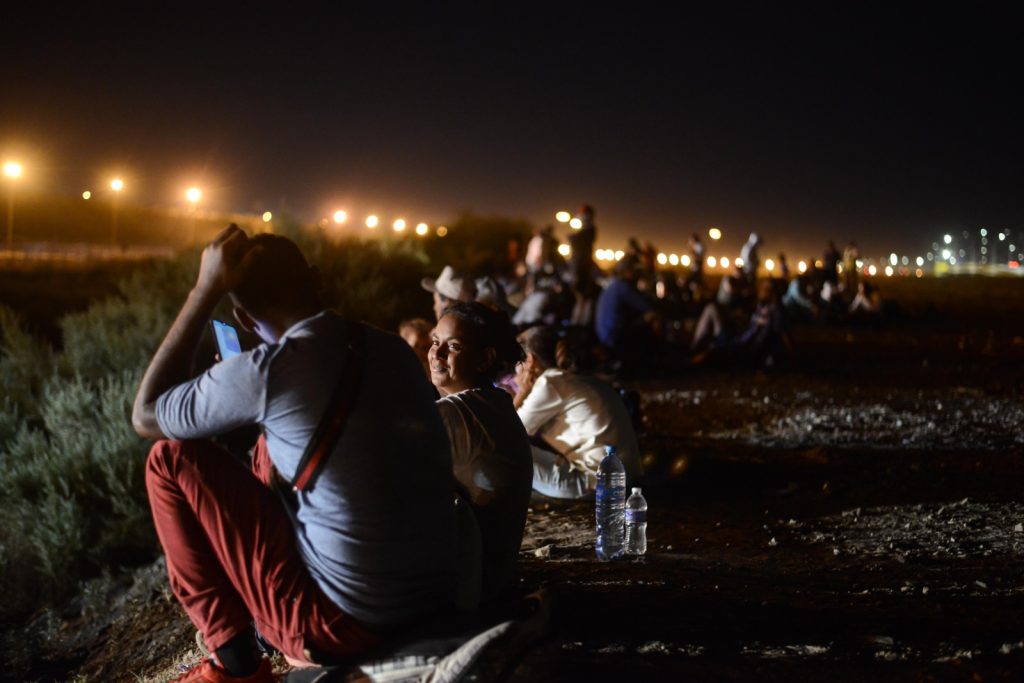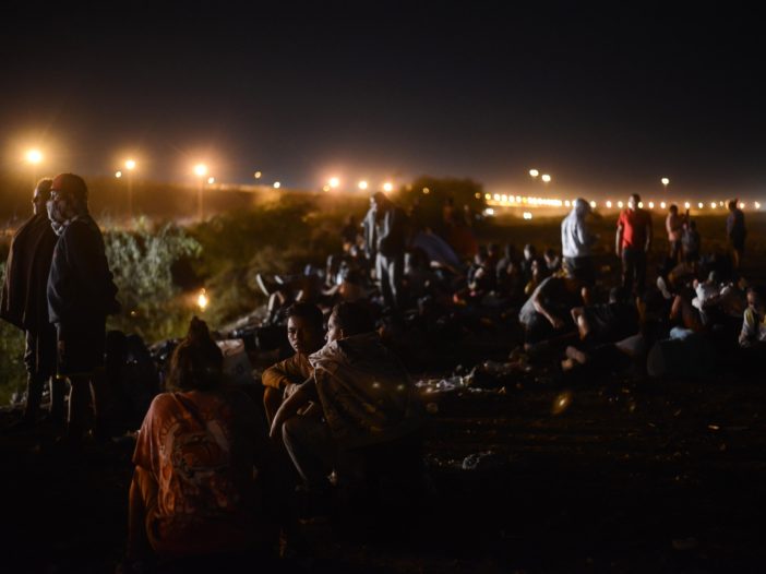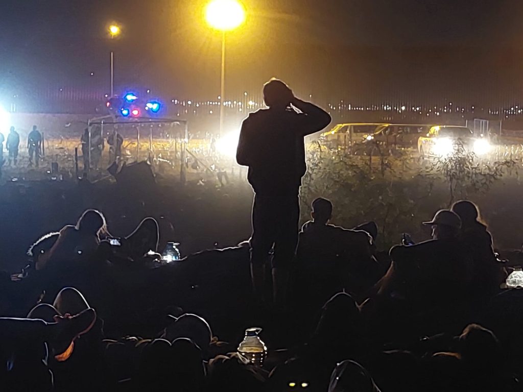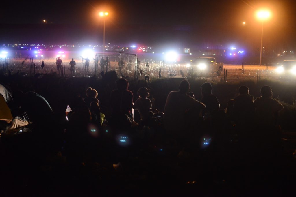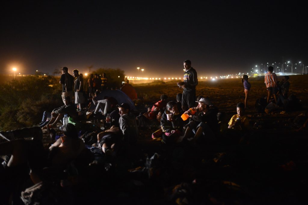 Migrantes que llegaron en grupo tras arribar a la ciudad a bordo del tren, pernoctarán esta madrugada a la espera de que más tarde abran la puerta fronteriza número 36.
