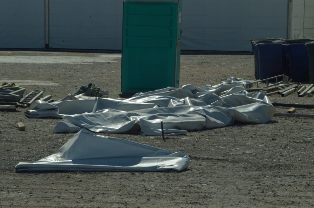 Además, en una de las carpas en las que ya se habían instalado los dormitorios, se observó como cayó una de las lonas, exponiendo al polvo, las decenas de literas que habían sido colocadas en este espacio.