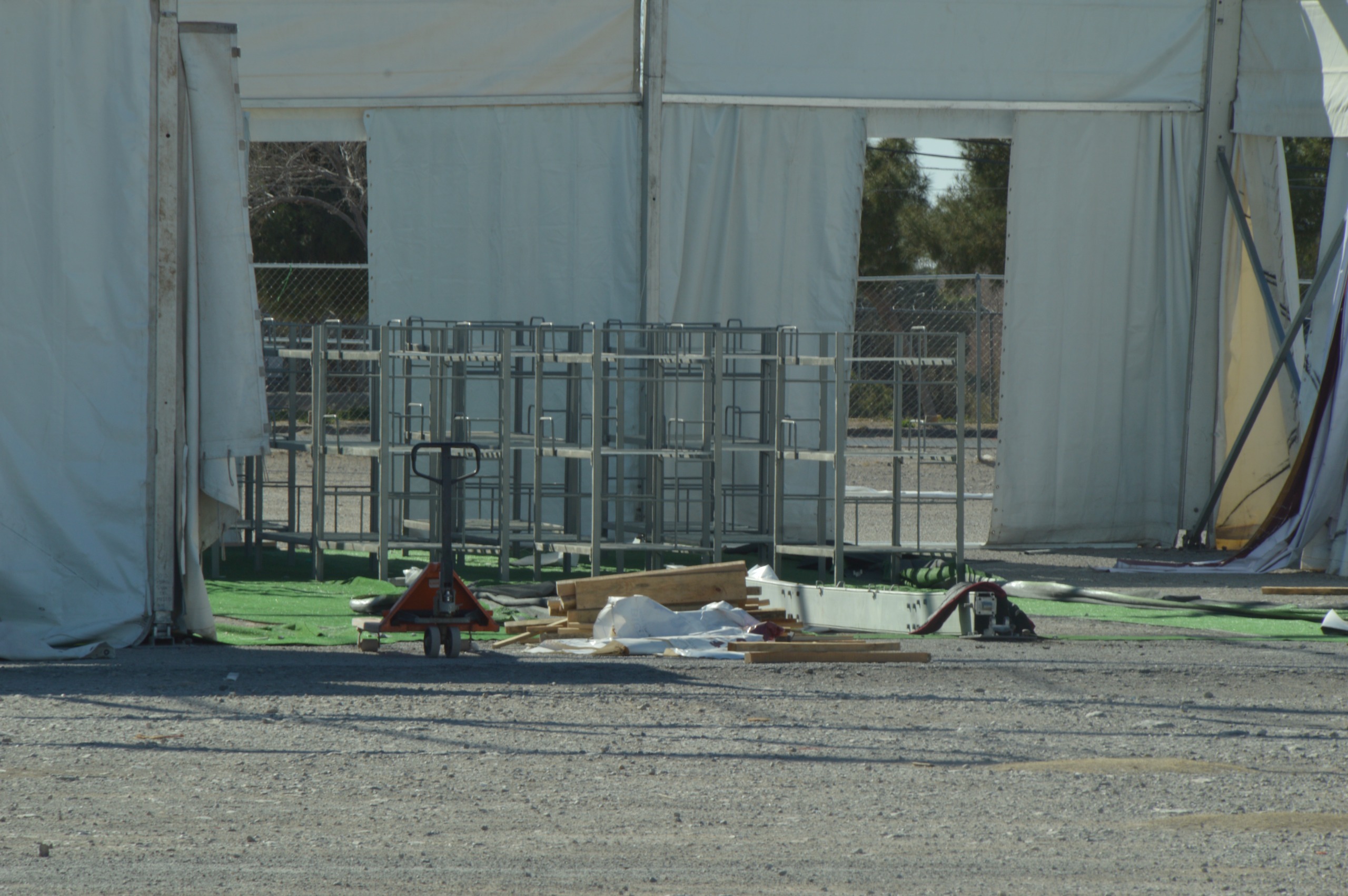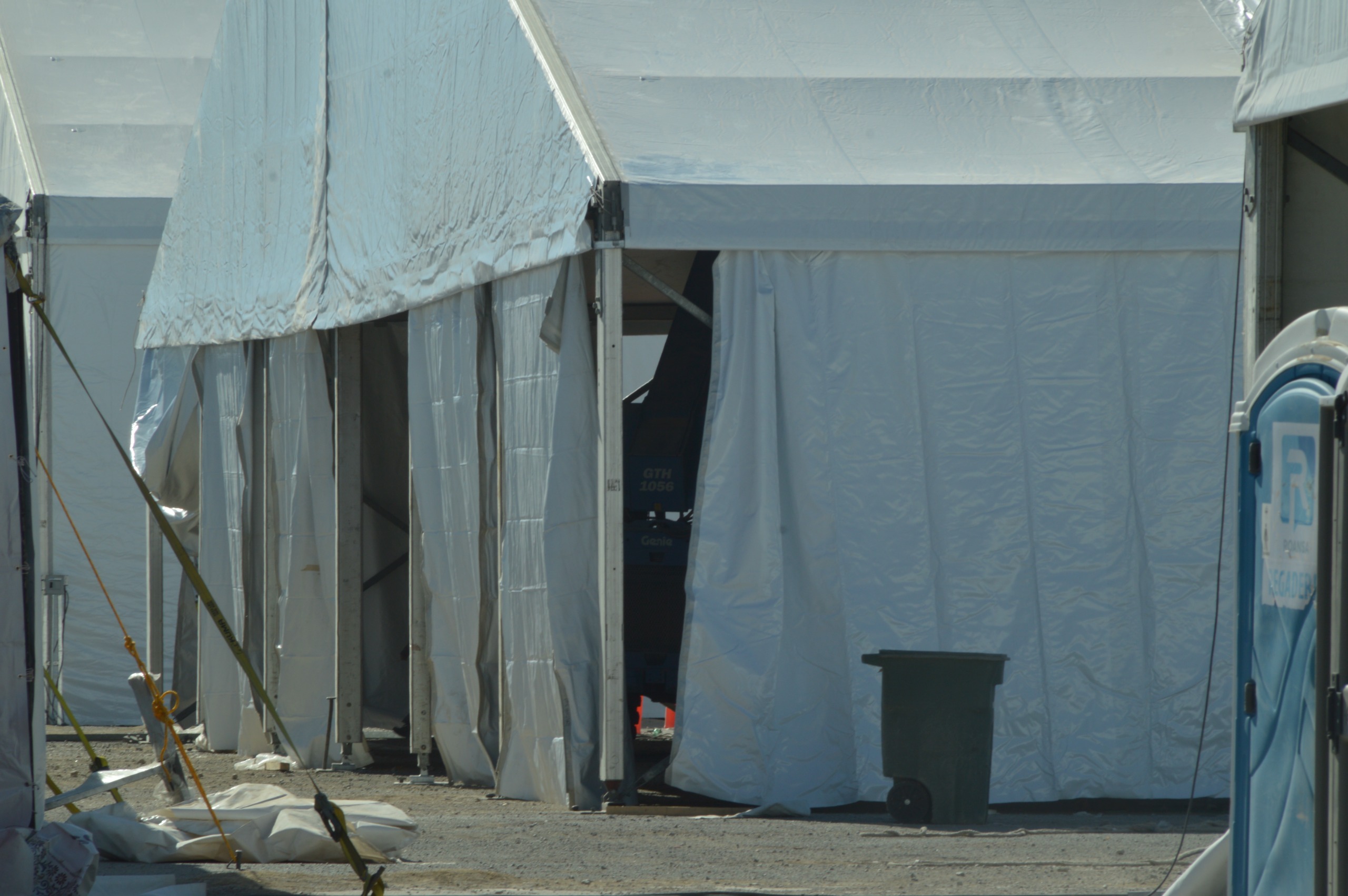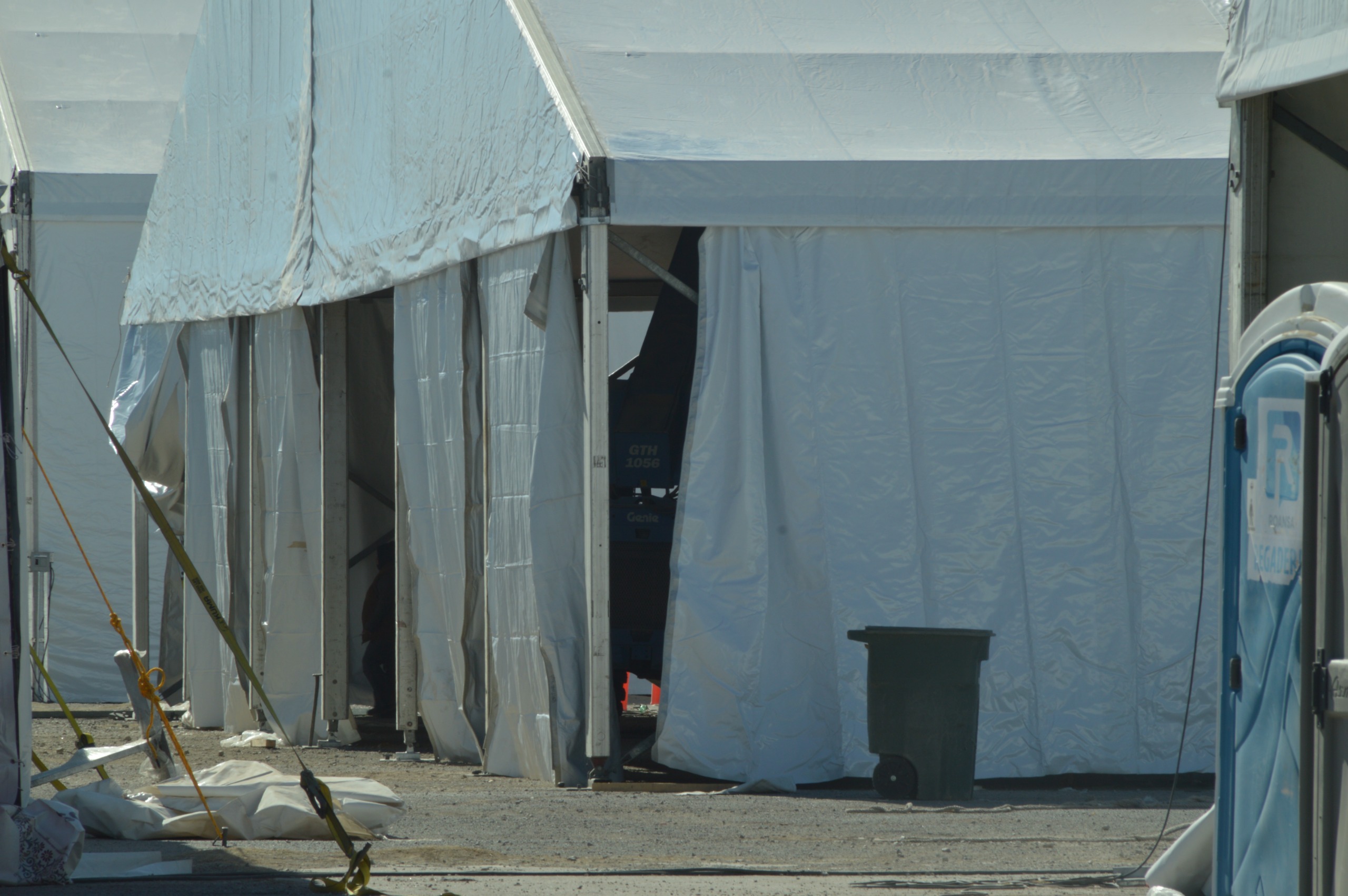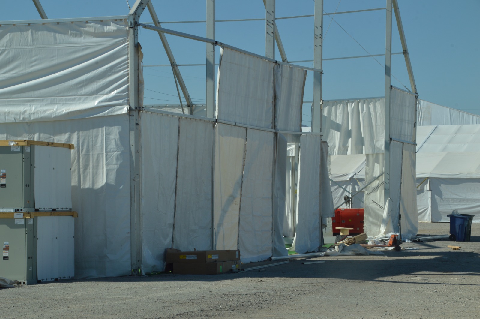 Además, en una de las carpas en las que ya se habían instalado los dormitorios, se observó como cayó una de las lonas, exponiendo al polvo, las decenas de literas que habían sido colocadas en este espacio.