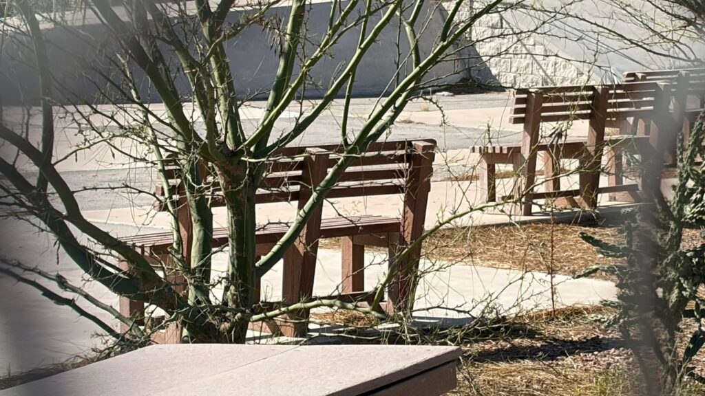 En el área también se colocó algún mobiliario urbano, como bancas y depósitos de basura con madera tipo campestre, pero todo está actualmente deteriorado.