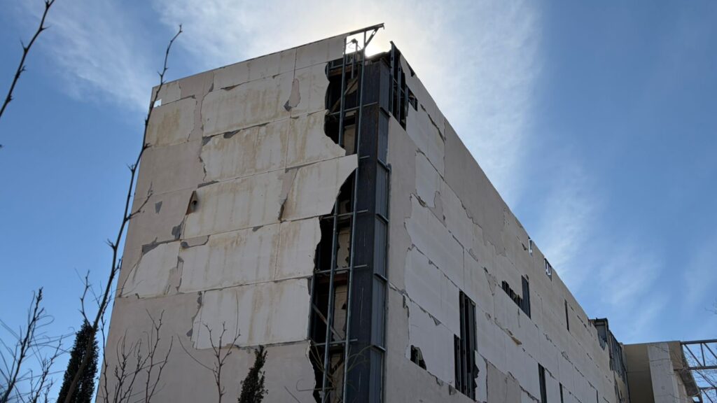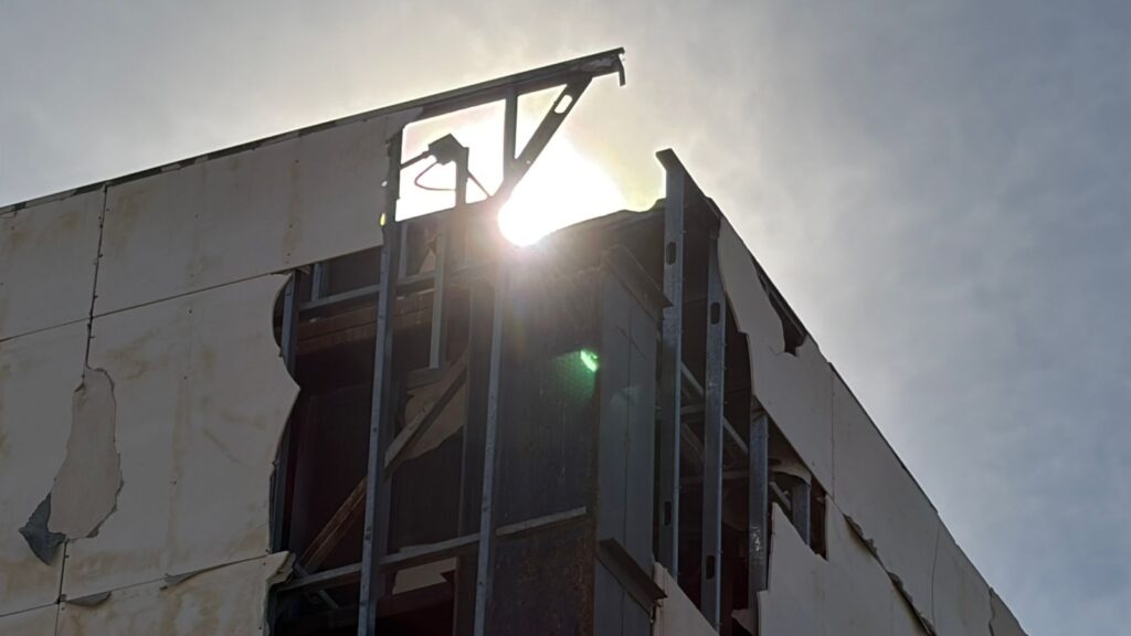 La estructura hueca del muro principal fue construida con paredes de yeso que ya lucen destruidas por el paso del tiempo y la falta de mantenimiento.