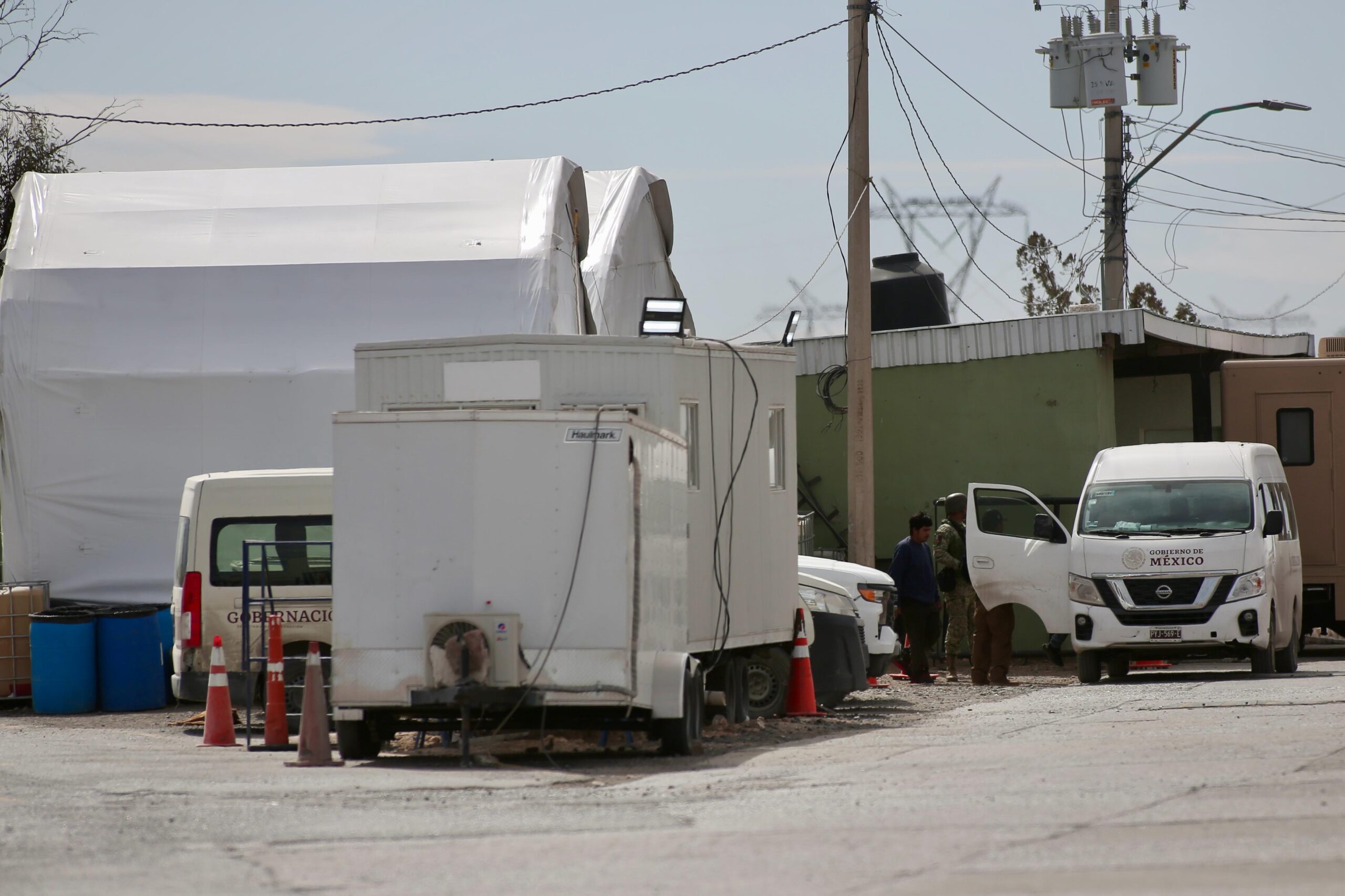 En el lugar se observan entre seis y ocho agentes del INM con uniformes verde con beige.