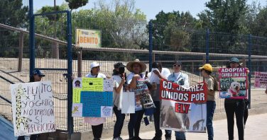 Unas 50 personas participaron este día en la ‘Marcha ciudadana por los derechos de los animales’, en la que hicieron énfasis en que Benito, la jirafa que se encuentra en el Parque Central poniente, debe ser trasladada a un hábitat fuera de Juárez, porque actualmente estaría sufriendo maltrato. Los juarenses se unieron a una protesta … Sigue leyendo FOTOS: Marchan contra maltrato animal; piden llevar a Benito a santuario en Texas