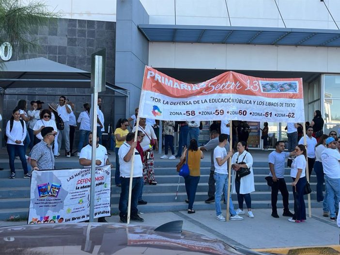 Al menos mil maestros juarenses se apostaron esta mañana en el exterior de las oficinas del Gobierno estatal ubicadas en la avenida Abraham Lincoln esta mañana para exigir la entrega de los libros de texto.