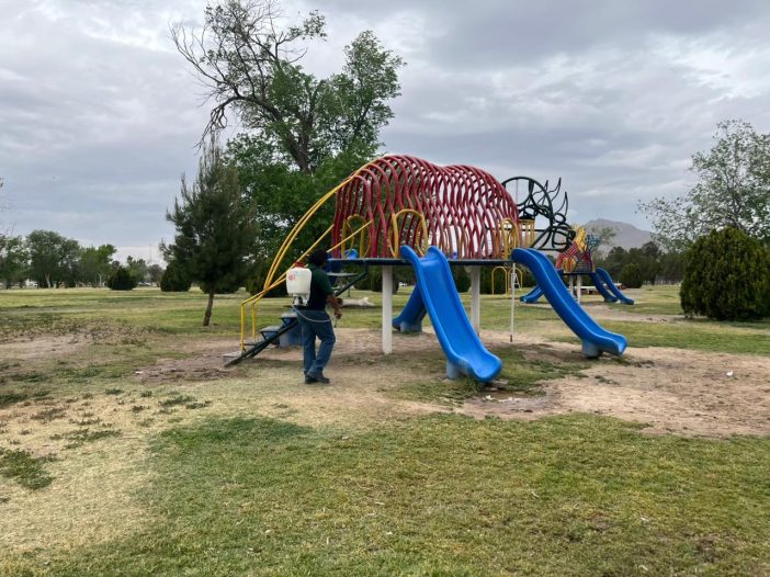 Autoridades municipales realizaron acciones de fumigación en El Chamizal ante la presencia significativa de garrapatas, una situación que ya representa un riesgo sanitario para quienes acuden a este y otros espacios públicos.