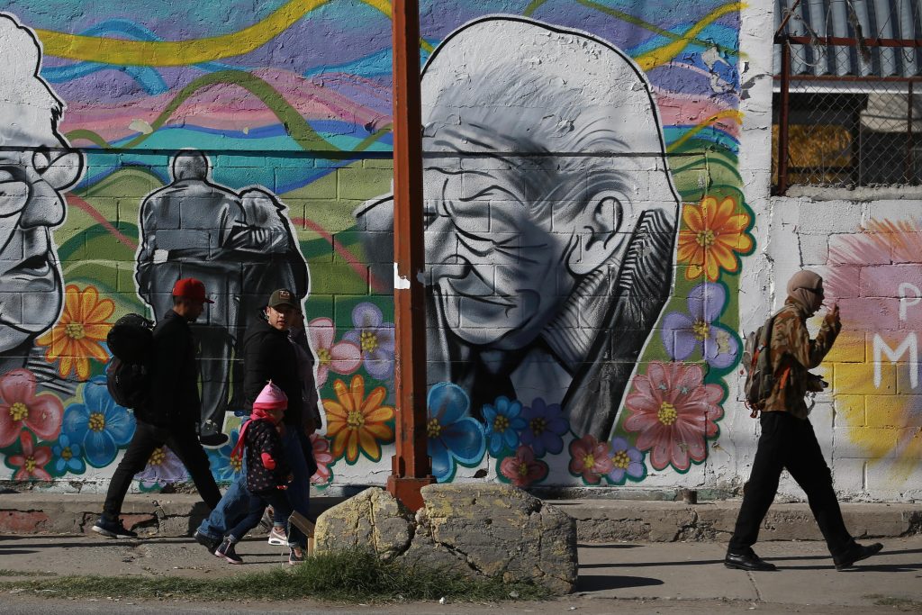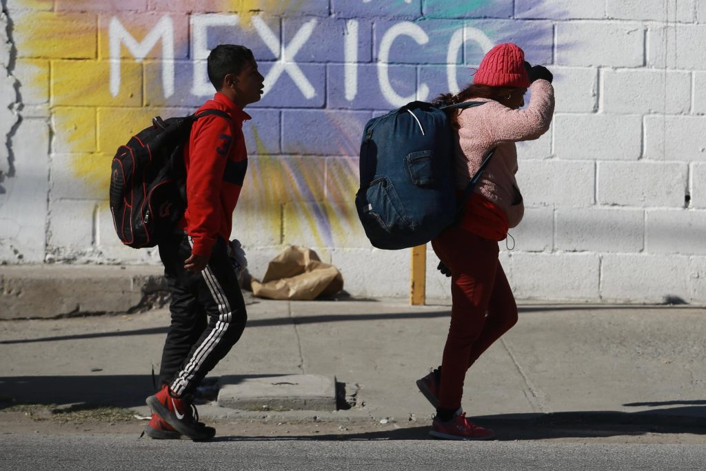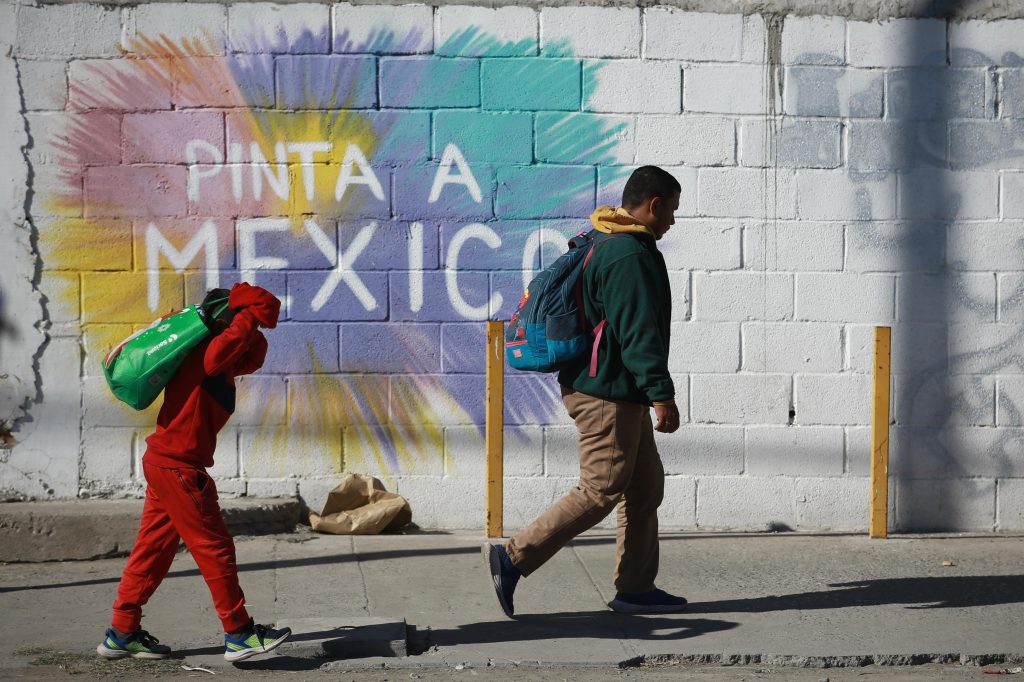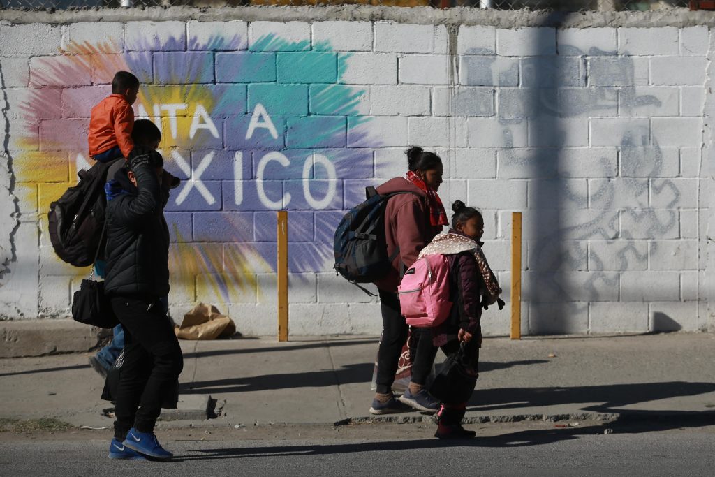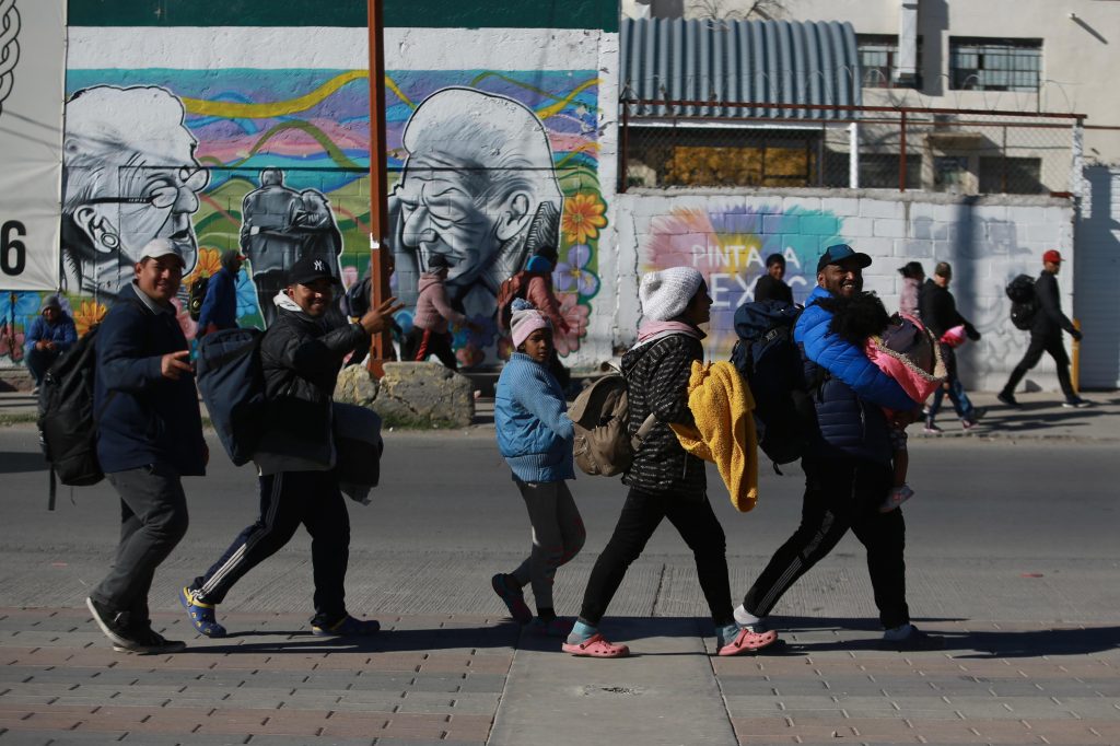 El convoy humano está conformado por varias familias y hombres solos que buscan solicitar el asilo en el vecino país, entregándose a las autoridades en el muro fronterizo.